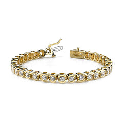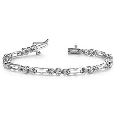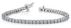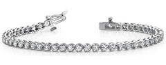 The item showing is 7" set in 14 kt white gold. 3.00 Ct Diamond 2.3 MM each clarity VS color G-H.